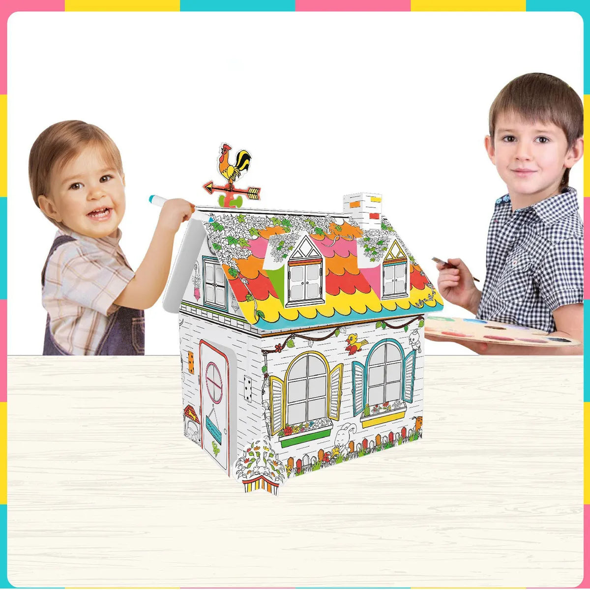 Casa de Cartón para Pintar y Jugar | Refugio Creativo para Niños de 3 a 8 Años